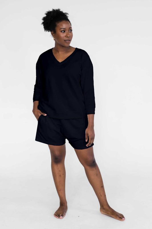 Darin V-Neck 3/4 Sleeve Sweatshirt | Black