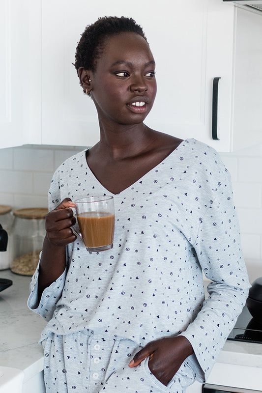 Jamie V-Neck Sleep Top | Light Grey Allover Print