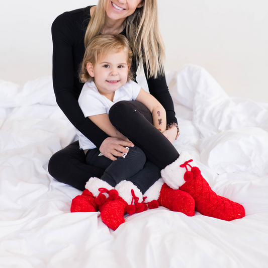 Chenille Knit Holiday Poppy - Kids Recycled Slipper Socks