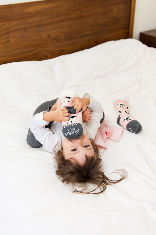 Lumberjack Pink Duo - Kids & Toddler Recycled Slipper Socks