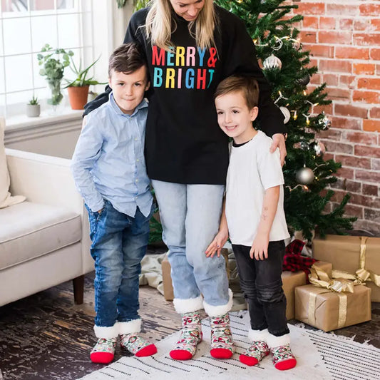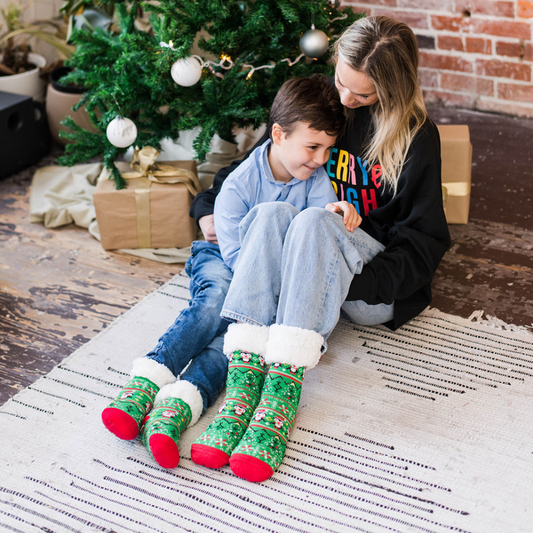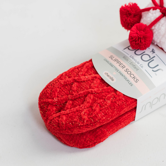 Chenille Knit Holiday Poppy - Kids Recycled Slipper Socks