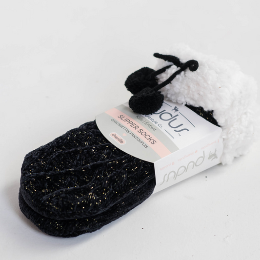 Chenille Knit Holiday Black - Kids Recycled Slipper Socks