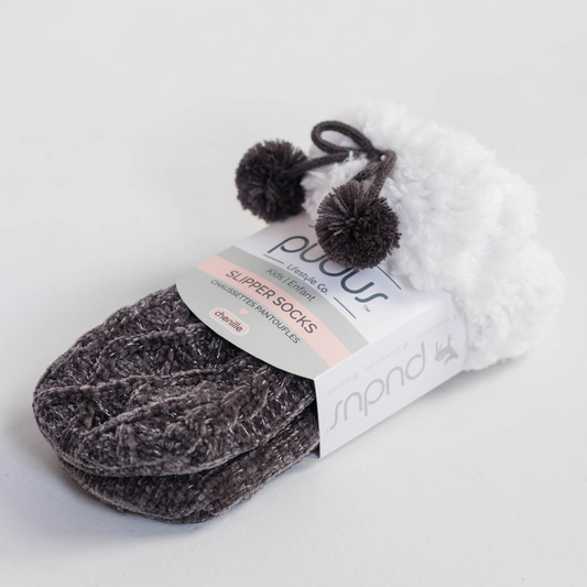 Chenille Knit Holiday Charcoal - Kids Recycled Slipper Socks