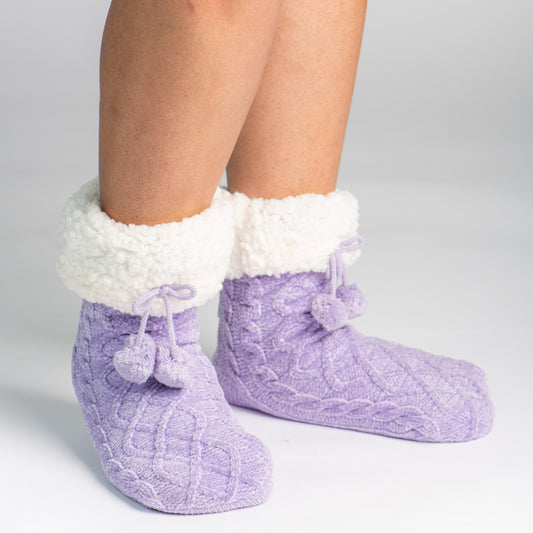 Chenille Cable Knit Classic Slipper Socks | Lavender