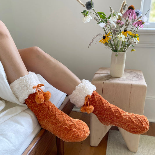 Chenille Cable Knit Classic Slipper Socks | Peach Caramel