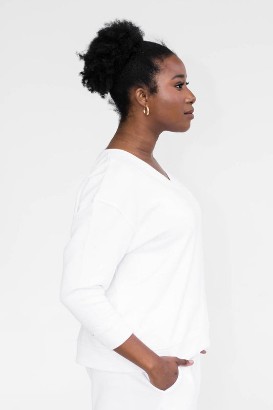 Darin V-Neck 3/4 Sleeve Sweatshirt | White